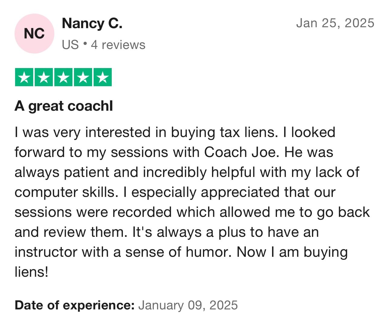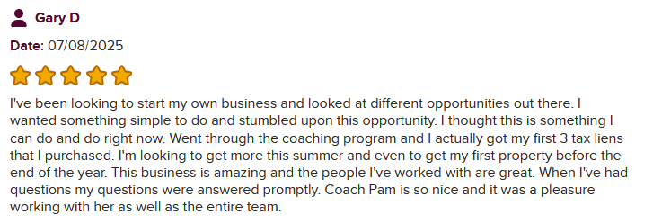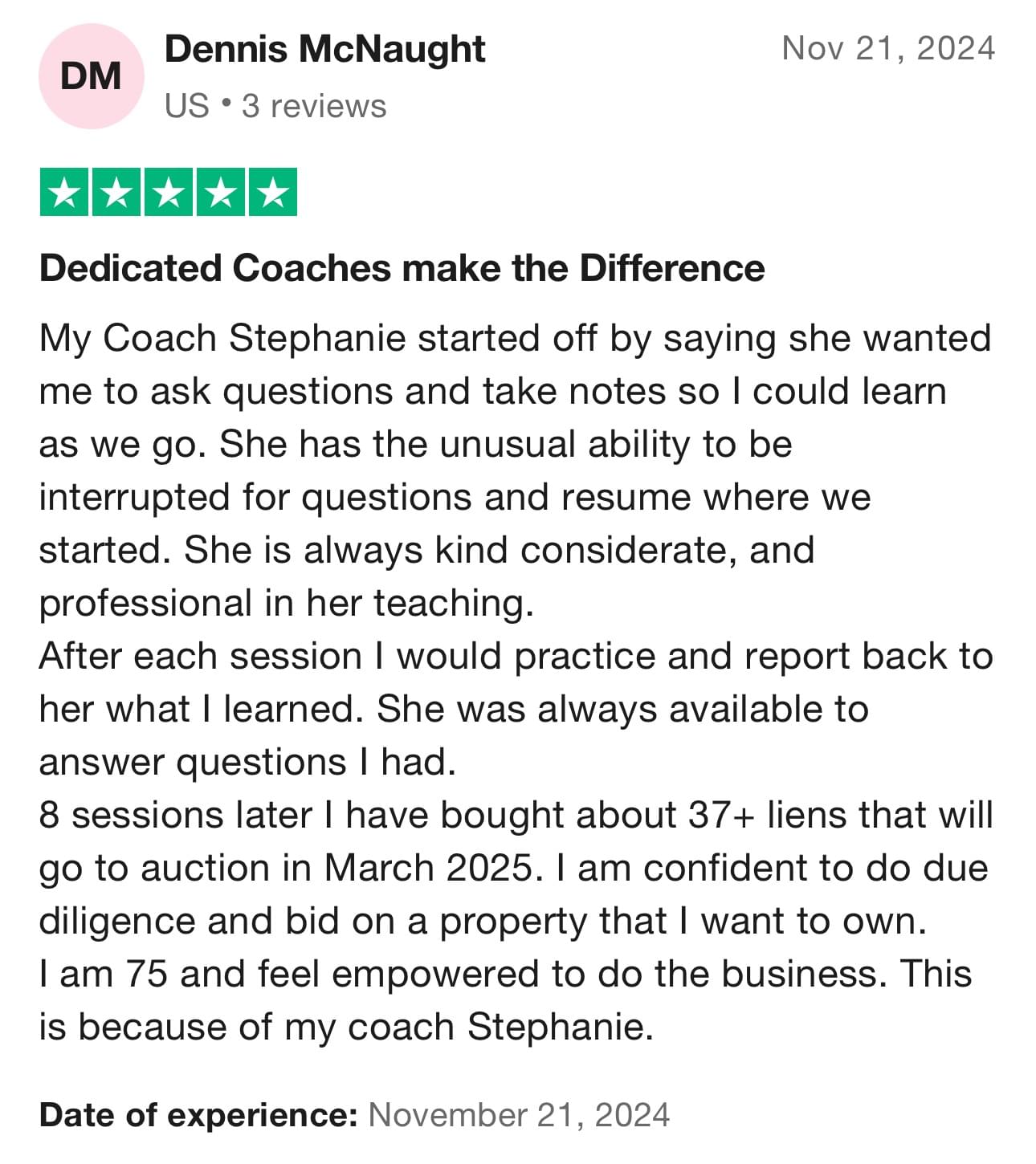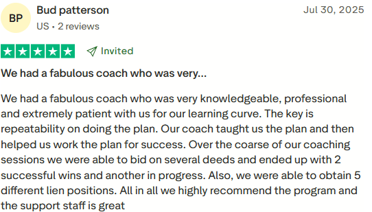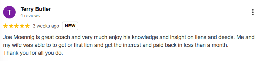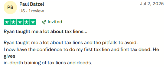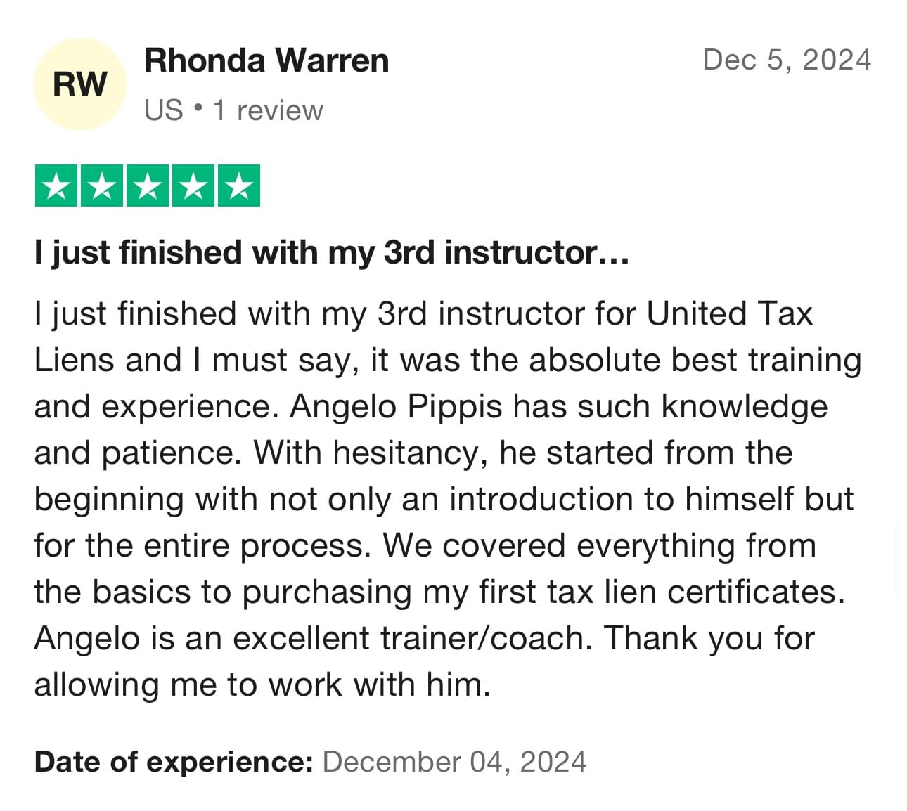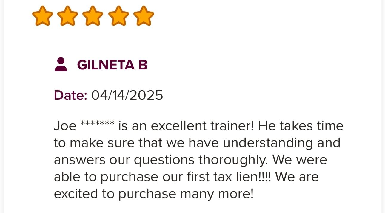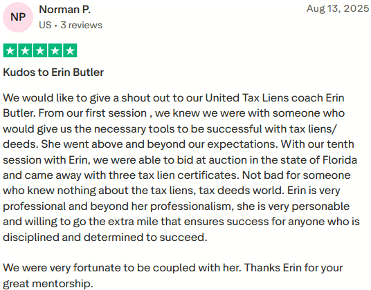 United Tax Liens is a direct-to-consumer real estate education and training company. We do not sell a business opportunity, “get rich quick” program or money-making system. We believe, with education, individuals can be better prepared to make investment decisions, but we do not guarantee success in investing. We do not make earnings claims, efforts claims, return on investment claims, or claims that our training will make you any money. Statements and depictions are the opinions, findings, or experiences of individuals who generally have purchased education and training. Results vary, are not typical, and rely on individual effort, time, and skill, as well as market conditions and other factors. We do not measure earnings or financial performance. Instead, we track completed transactions and satisfaction of services by voluntary surveys. Results show that most Advanced Training customers who apply the training and make offers ultimately complete transactions. You should not, however, equate completed transactions with financially successful transactions. Further, many customers do not continue with the program, do not apply what they learn, or do attempt to apply what they learn but nonetheless have difficulty in making real estate successful for them. You should assume that most customers do not complete transactions. The Company may link to content or refer to content and/or services created by or provided by third parties that are not affiliated with the Company. The Company is not responsible for such content and does not endorse or approve it. The Company may provide services by or refer you to third-party businesses. Some of these businesses have common interest and ownership with the Company. Third-party company names, logos, and products are trademarks or registered trademarks of their respective holders. I understand that by submitting this application, I am also authorizing United Tax Liens and its partners to obtain my personal credit profile through a soft inquiry under the FCRA solely to conduct a credit pre-qualification.