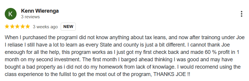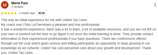 United Tax Liens’ information, presentation, materials, and all other media components of its Website and events are copyrighted. Any duplication, reproduction, redistribution, or recording, of any nature, is strictly prohibited. The testimonials and student experiences shared are from our top students who have shared their success with us. Many do not apply the strategies employed by these students and therefore do not have success. Many of these students also purchased additional training materials. We provide educational products and training and do not sell a business or business opportunity; individuals who purchase our educational products and training may not make any money. Individual results vary and depend on the time, energy, knowledge and money an individual put into their real estate investments, as well as other factors beyond the control of the individual. We provide real estate, tax & entity education. Investing of any kind carries risk and it is possible to lose some or all of your money. The training provided is general in nature, and some strategies may not be appropriate for all individuals or all situations. We make no representation regarding the likelihood or probability that any actual or hypothetical investment will achieve a particular outcome or perform in any predictable manner. Past performance is not a guarantee of future success. Be advised that we do not give any individual real estate recommendation. It is highly recommended that individuals work with licensed real estate brokers, agents, and professionals for any real estate transactions. We do not provide accounting or legal advice, nor do we prepare tax returns or entity structuring. Prior to undertaking any business transaction, we encourage you to consult your own accounting, real estate, legal or tax advisor.